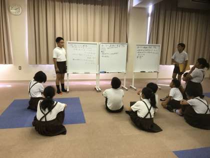 夏休み中に講堂の床を工事できれいにしてもらいました。