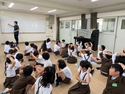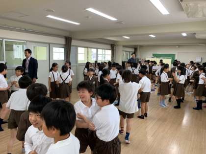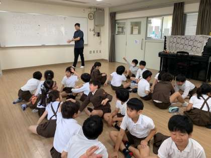 4年生は、CーNETの先生と外国語活動を行いました。友だちの好きな果物を尋ねるactivityのために、key word gameやチャンツを繰り返し練習しました。