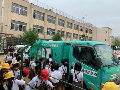 ごみ収集車も展示していただき、子どもたちは興味深く見学していました。