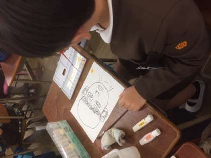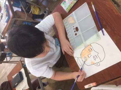 鏡をしっかりと見てしっかりと描いた子どもたちの顔は、とても特徴を捉えて本人そっくりです。色塗りも絵の具を使って集中して取り組んでいました。