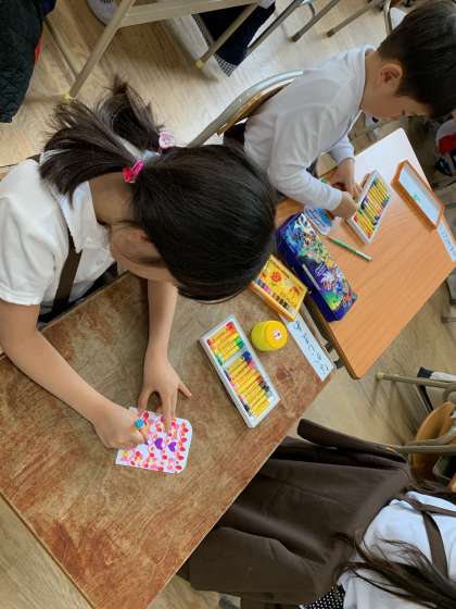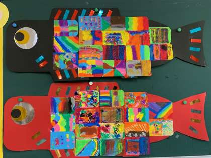 一人一人うろこをかき、大きな鯉のぼりができました。