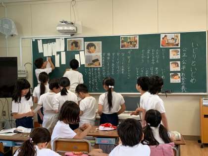 いじめを考える日の取り組みとして、特別の教科道徳で「いじりといじめ」の学習を行いました。