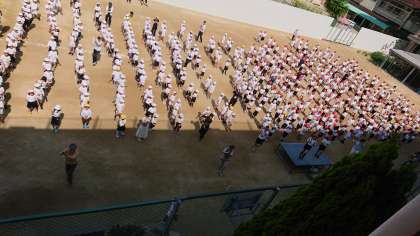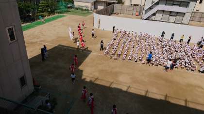 堀江女性会の皆様に、運動会のふれあい演技での「河内音頭」のご指導をいただきました。