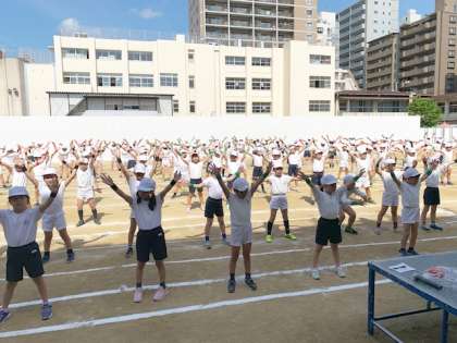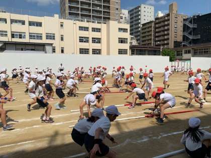 4年生は、1時間目に運動会のリハーサルを行いました。4年生192名の気合の入った声が校庭に響き、迫力を感じました。