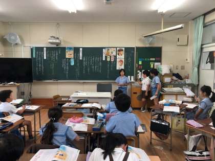 今日は、4年生の担任がクラスを入れ替わって道徳の授業を行いました。