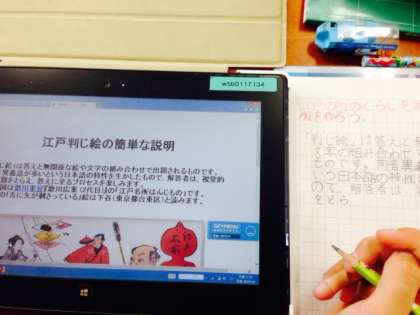 タブレットで江戸時代の人々のくらしを調べ、デジタル瓦版を作りました。