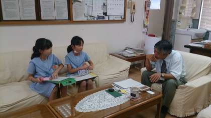 3年生たちが、国語の授業で学んだことを活かし、校長先生にインタビューを行いました。グループでどんな質問にするかなどを相談して決め、学習した手順通りにインタビューを行います。普段では入ることのない校長室の雰囲気に緊張しつつも、しっかりとインタビューを行うことができました。