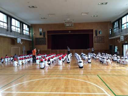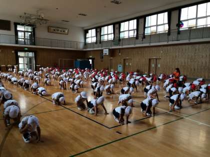 体育の授業ではプールが終わり、運動会の練習をはじめています。
