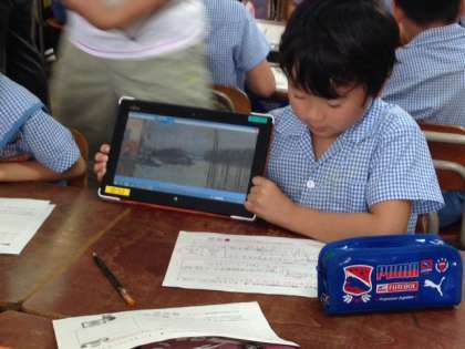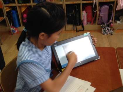5時間目、3年4組で、3組担任の高濱先生による研究授業を行いました。タブレットを活用し、図工の鑑賞を行おうという授業です。教育センターから指導主事が来校され、放課後には教職員らが多目的室に集まり研究討議会を行ないました。