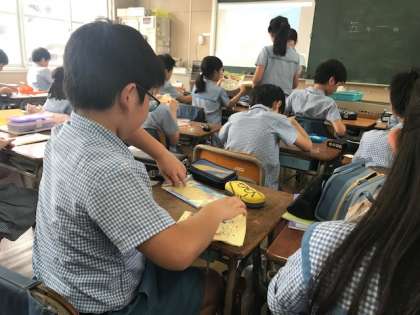 家庭科の学習では、裁縫道具を使って玉結びや玉止めの練習をしています。苦戦しながらも、上手くできた時には嬉しそうな笑顔を見せてくれました。