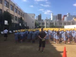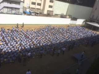 全校朝会を行いました。昨日の沖縄慰霊の日についての副校長先生の話をじっくり聞いていました。