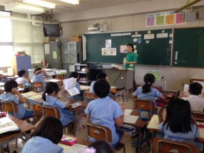 3年生の栄養指導授業の様子です。仲平先生が教えてくださいます。