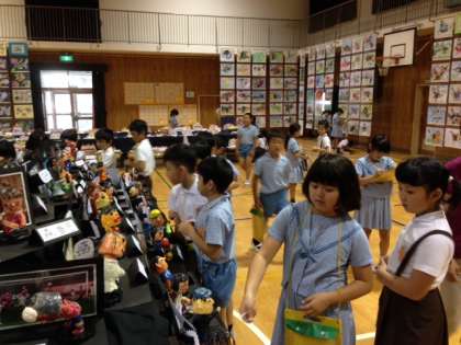 3年の子どもたちが担任の先生や友だちと一緒に、作品展の作品鑑賞を行いました。やっぱり高学年の作品に目を引かれるかと思いきや、1年生や2年生の作品を見て感嘆の声が。どの学年の作品にも、それぞれの良さがあります。