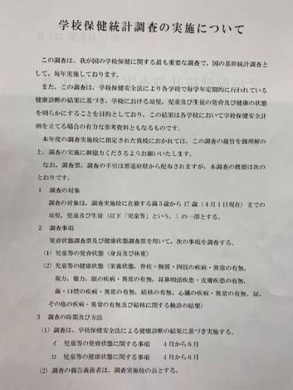 今年度の健康診断の結果統計を文部科学省に報告をしました。