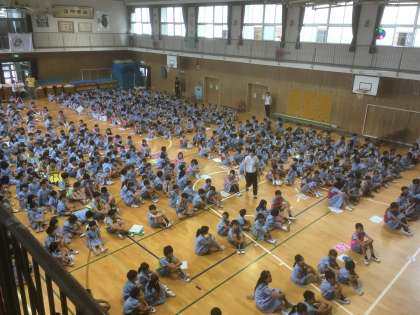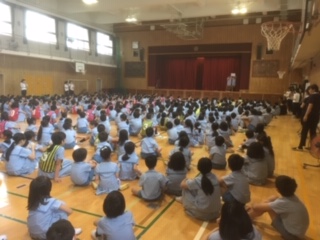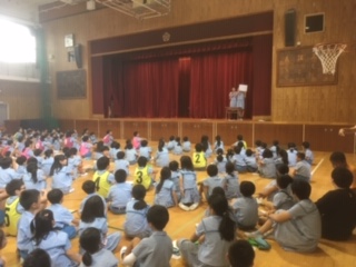 1年、3年、6年でゲーム集会を行いました。カーテンの隙間を通ったのは…?