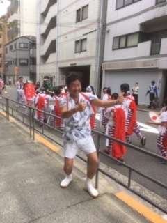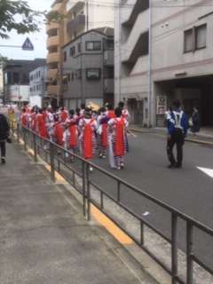 法被を着て賑やかに布団太鼓を曳航していました。本校前で声を合わせて祈念してくれました。