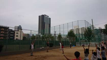 雨のためグランドの状態で見合わせた場所では、今朝が最初のラジオ体操となりました。