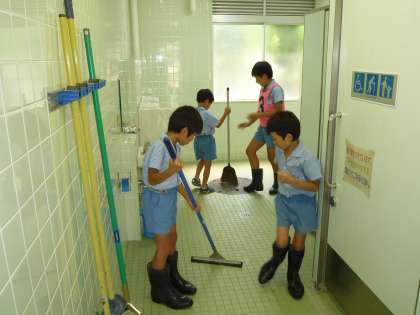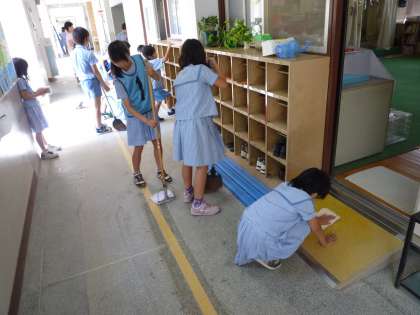 7月18日夏休みを前に、6年生がリーダーとなってなかよし班で、普段行き届かない場所を入念にお掃除しました。