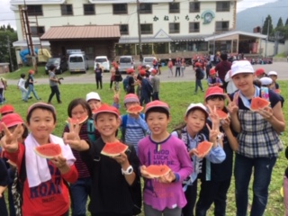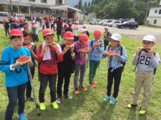 全員無事に登り終え、お待ちかねのスイカです。