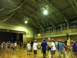 室内オリンピックでは、借り物競争や風船バレーで盛り上がっています。