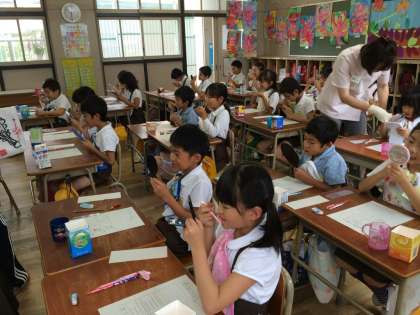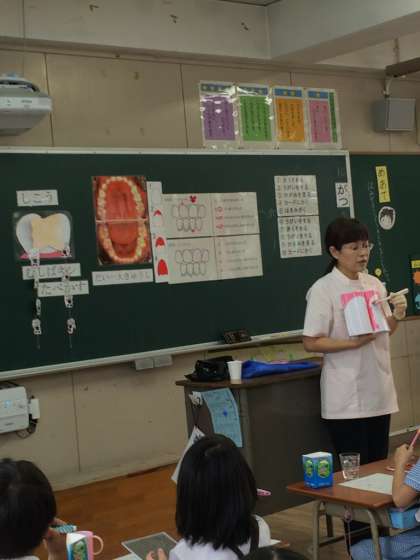 歯科衛生士の先生から、歯みがきのしかたについて教えていただきました。