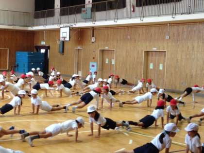 今日は幼稚園の運動会でしたが、体育館で練習ができました。