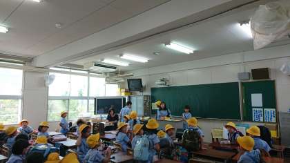 集団下校を行うために、地域班で教室に集まりました。