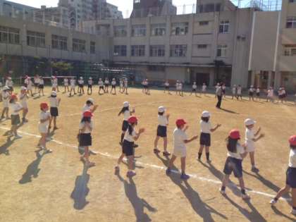 みんなで大きな輪をつくっています!隊形移動の際にも、3年生のみんなはすばやく行動することができます。さすが!☆