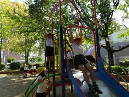 午後はおいしいお弁当を食べたあと、日本一低い山、天保山に登りました。そこにある公園では、遊具であそんだり、大勢でおにごっこをしたり、色づく葉っぱをさがしたり・・・