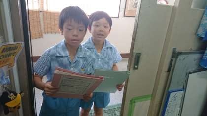 朝は児童がクラスの「健康の記録簿」や「アレルギチェック」を職員室に届けにきます。