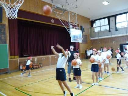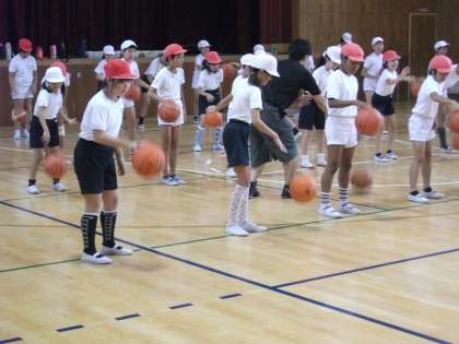 大阪エヴェッサのコーチの方々にバスケットボールの指導をしていただきました。