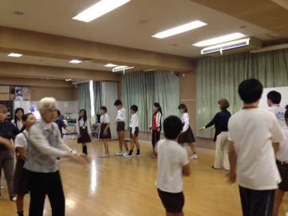 堀江地域の女性会のみなさんが、児童たちに運動会の演目の「河内音頭」を教えてくださいました。伝統文化の継承にもつながるふれあい演目で、大切にしていきたいものです。