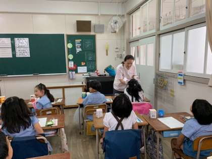 本日、学校歯科医の村尾先生と、歯科衛生士さんによる歯みがき指導を行っていただきました。