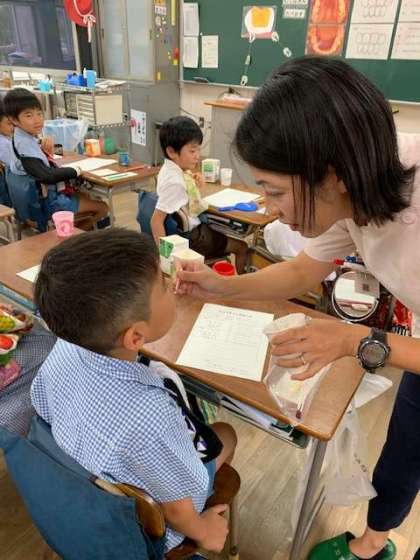 最後は、衛生士さんにていねいな歯の磨き方を教えてもらい、一生懸命磨いていました。