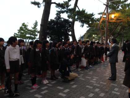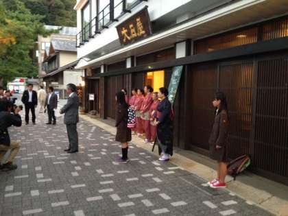 宿舎の大石屋さんの前で、開舎式を行いました。
