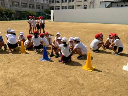 4年生は、体育科で「タグラグビー」に取り組んでいます。