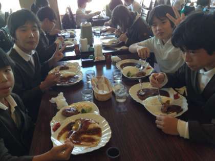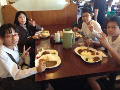 昼食の定番のカレーライスです。みんなでわいわいがやがや食べたら、またおいしい。
