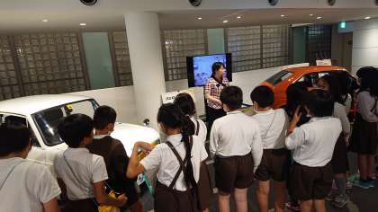 社会科の学習の一環で、ダイハツの池田工場へ行きました。説明を聞きながら展示館や工場の中を見学しました。展示館での体験活動や実際に車を組み立てる工程の見学ができ、自動車工場への関心が高まりました。