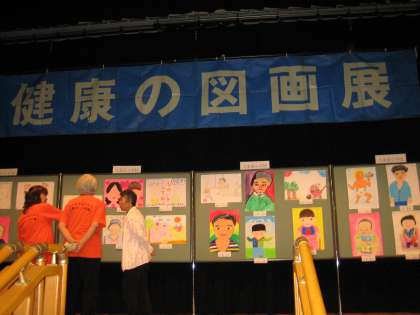 「元気なあかちゃん」「大好きなおじいちゃん・おばあちゃん」をテーマとした健康の図画の展示に本校の児童の作品もありました。