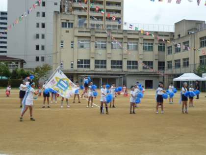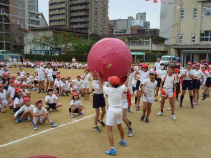 応援合戦や全学年競技(大玉ころがし)などの練習をしました。