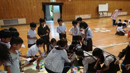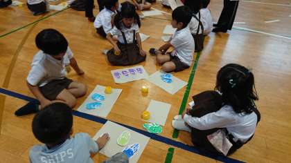 アスク南堀江保育園の園児と1年生が絵画作品を共同制作しました。