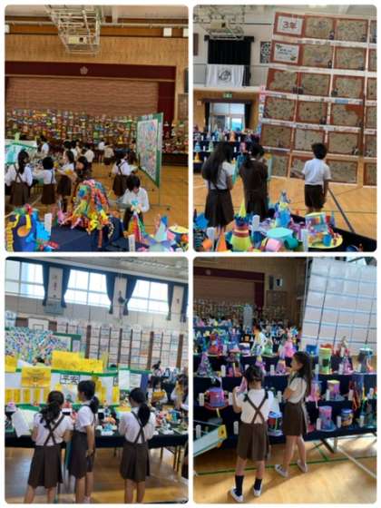 「友だちの作品と一緒に並ぶことで、さらに迫力が増したように思います。」など、自分や友だちの作品のよさ、発想豊かな工夫についてたくさん感想が聞かれました。