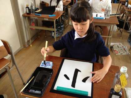 上は3組での書写の授業です。真剣な面持ちですね。