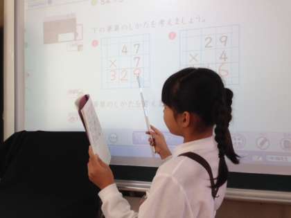 下は2組での算数です。今日も自分で考えた計算のしかたを、上手に友だちに説明ができました。