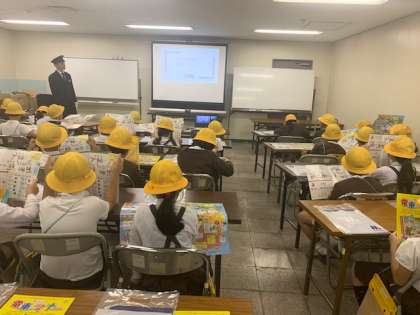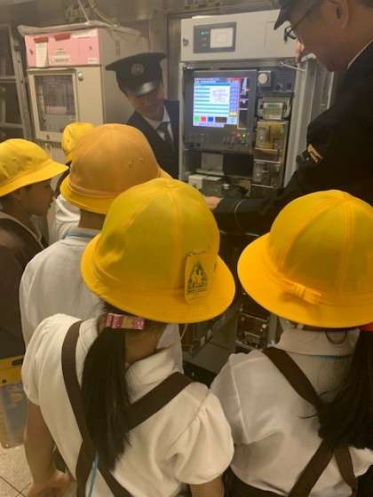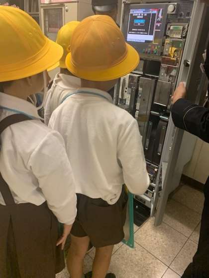 四ツ橋駅で、駅員さんに電車でのマナーや、きっぷの買い方を教えてもらったり、券売機の裏を見せていただいたりしました。