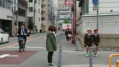 PTA地域委員の方々が朝の登校指導を行ってくださいました。