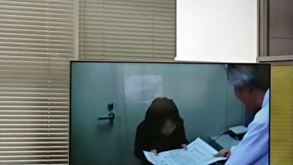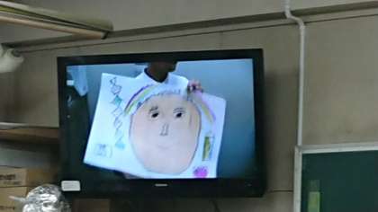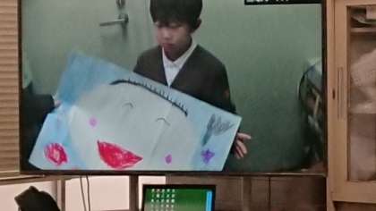 雨が降ってきたので、テレビ放送で全校朝会を行いました。