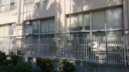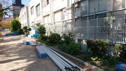南校舎の外壁補修工事のための足場の工事が始まりました。