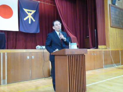 ご来賓として、堀江連合の岩見会長様、西六連合の川村会長様にお話をしていただきました。岩美会長様からは、ご自身の戦争体験から疎開生活での食べ物について、また、川村会長様からは、「ほりえ」「しんまち」「さいろく」等の地域の名称のイントネーションをわかり易くお話していただきました。