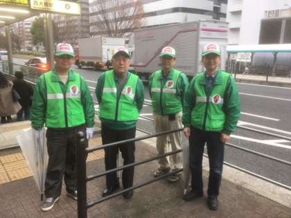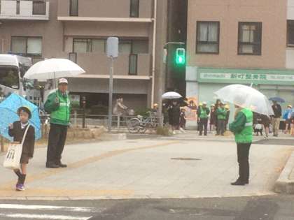 早々に雨がぱらつく中、登校時の見守りを行ってくださいました。